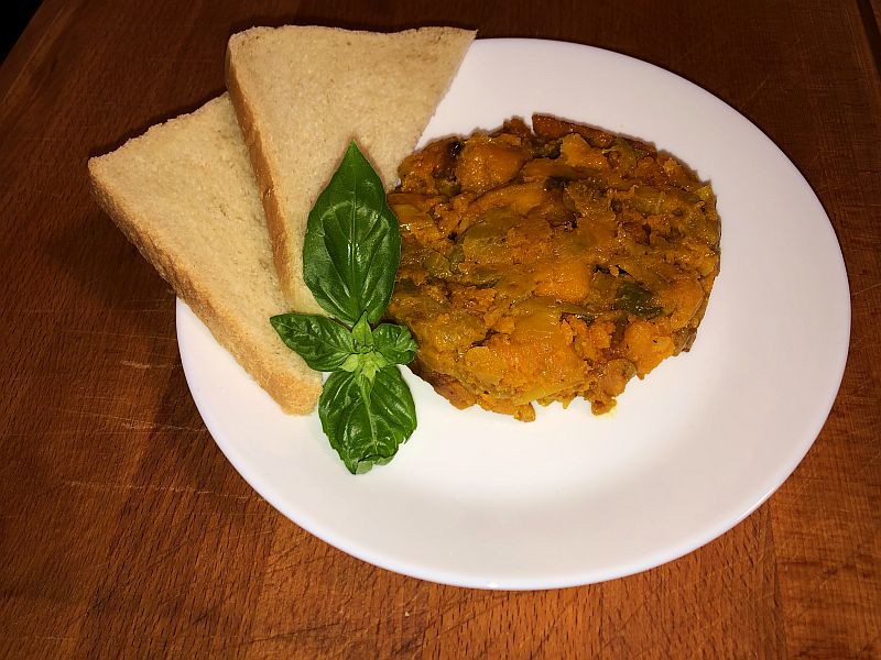 Dann in einer großen Pfanne das Fett erhitzen und das Gemüse scharf anbraten. Mehrmals wenden und dann mit der Kokosmilch ablöschen. Nun noch 15-20 min bei kleiner Hitze köcheln lassen. Als Beilage eignet sich am besten Reis, es gehen aber auch Kartoffeln oder Nudeln.
